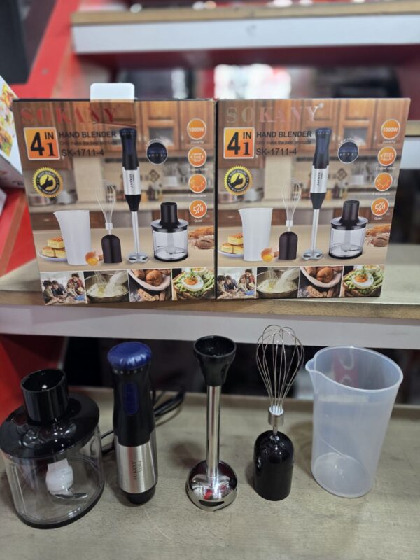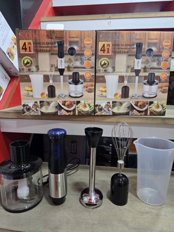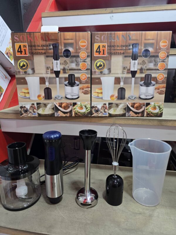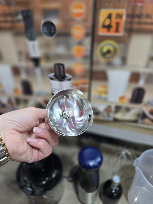 Цей багатофункціональний ручний блендер 4-в-1 призначений для виконання різних завдань з обробки харчових продуктів, включаючи подрібнення м’яса, фруктів, овочів та приготування салатів. Він оснащений двошвидкісним керуванням для універсального використання. Проста у використанні конструкція включає просту кнопкову панель управління і міцну і легку пластикову чашу з бісфенолу А, яка забезпечує швидке і легке очищення. Конструкція потужного дзвону забезпечує швидкі та ідеальні результати, а вал із нержавіючої сталі із захистом від бризок зводить до мінімуму безлад. Працюючи при напрузі 220–240 В, 50/60 Гц та вихідній потужності 1000 Вт, він забезпечує надійну роботу для всіх ваших потреб у змішуванні.