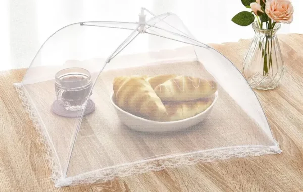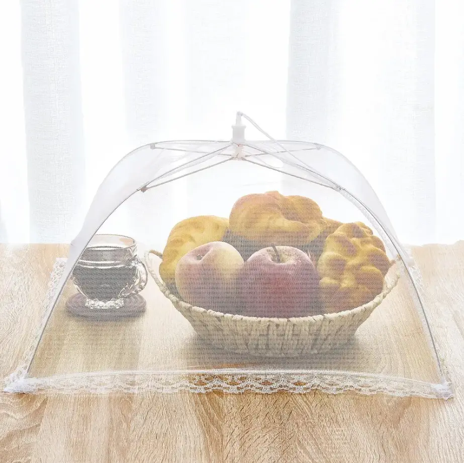Сітка-парасолька для захисту їжі від комах Біла – це ідеальне рішення для збереження продуктів на пікніку, саду чи будинку. Розмір забезпечує достатньо покриття для більшості столів, захищаючи їжу від комах. Легкість і компактність дозволяють зручно брати сітку із собою у подорожі та на пікніки. Дрібна сітка забезпечує хорошу вентиляцію, не допускаючи проникнення комах до продуктів, що особливо важливо у теплу пору року. Простота встановлення та використання робить цю сітку незамінною у будь-якому будинку. Вона легко складається і не займає багато місця для зберігання. Використовуйте її для захисту їжі на будь-якому заході на відкритому повітрі та вдома.