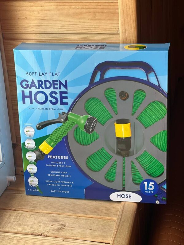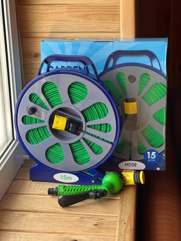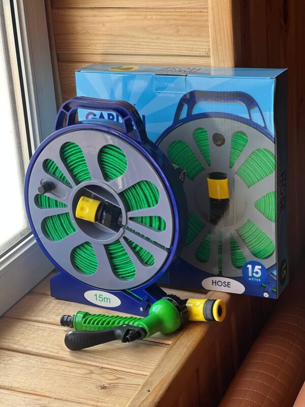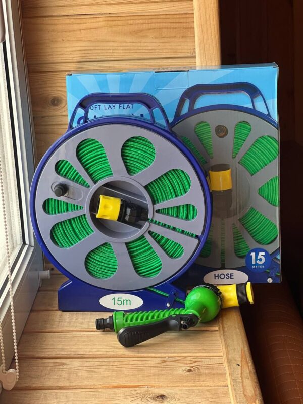 Надійний ПВХ матеріал забезпечує стійкість до зносу, а котушка дозволяє зручно зберігати шланг без заплутувань. У комплекті — 7-режимний розпилювач, який адаптується до будь-яких потреб: від ніжного туману до потужного струменя.