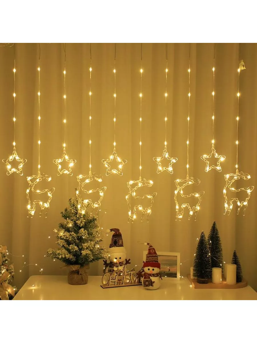 Форма лампочок: Зірка+Ялинка+Сніжинка+Місяць+Олень