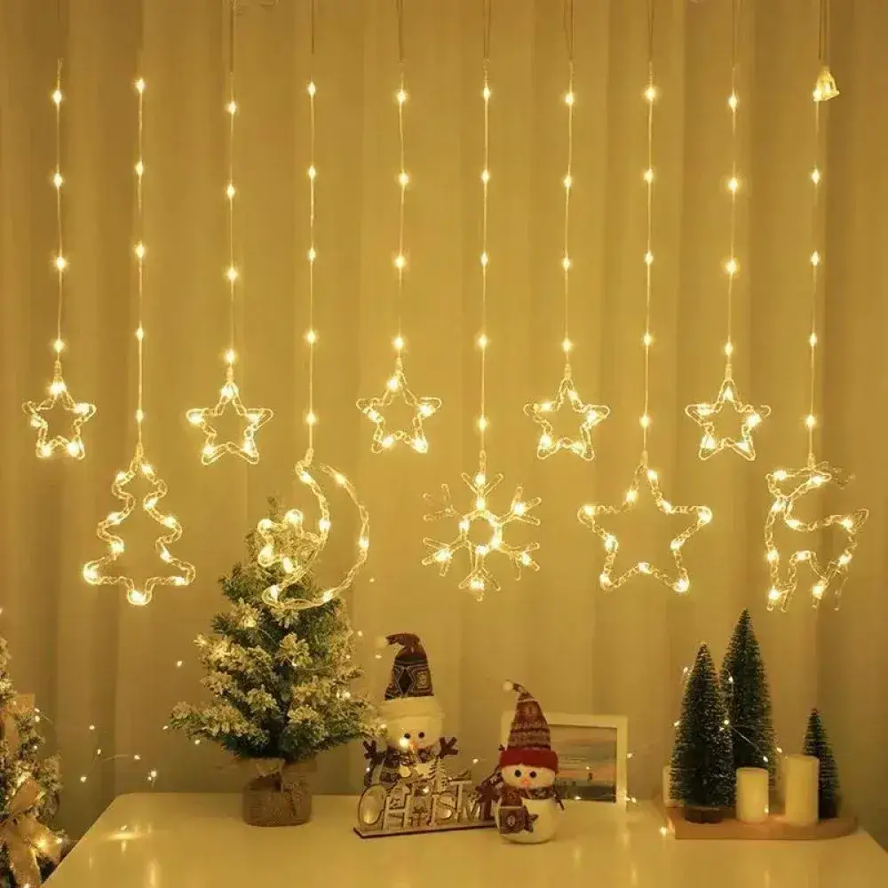 Штора 10 Теплая Usb ЗВЕЗДЫ+ Елка+ снежинка + луна И AND SF-42 код-3598