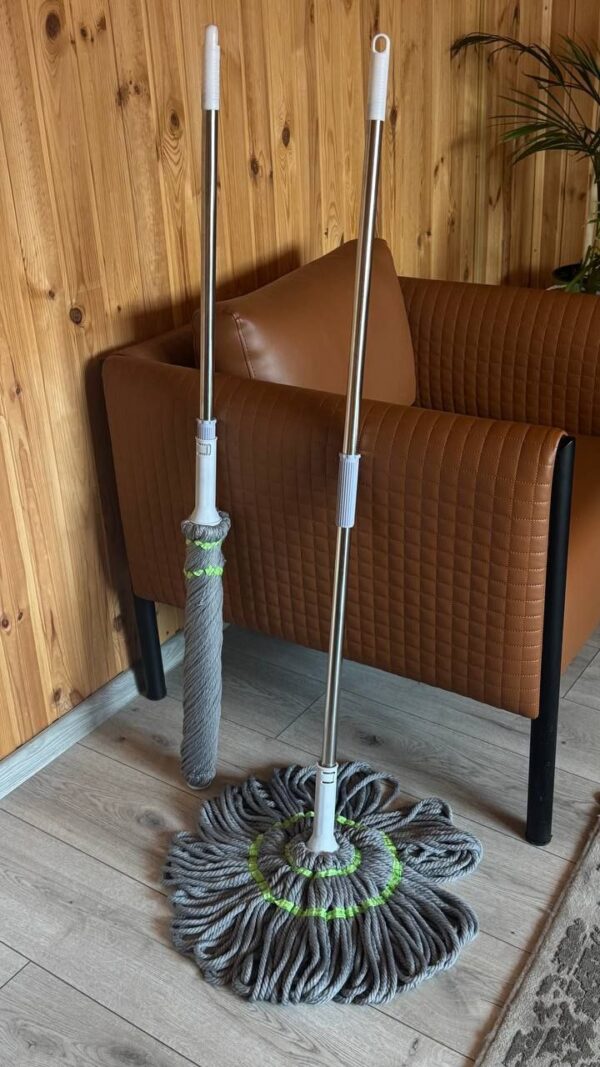 Призначена для миття кахлю, лінолеуму, ламінату, паркету від різноманітних забруднень. Завдяки пряжі з мікрофібри добре збирає та утримує значну кількість води з поверхні підлоги та добре збирає бруд. Завдяки спеціальному механізму віджиму на швабрі ваші руки завжди залишаються сухими та чистими під час збирання. Швабра виготовлена з досить міцного металу та пластику, що забезпечує простоту та надійність в експлуатації.