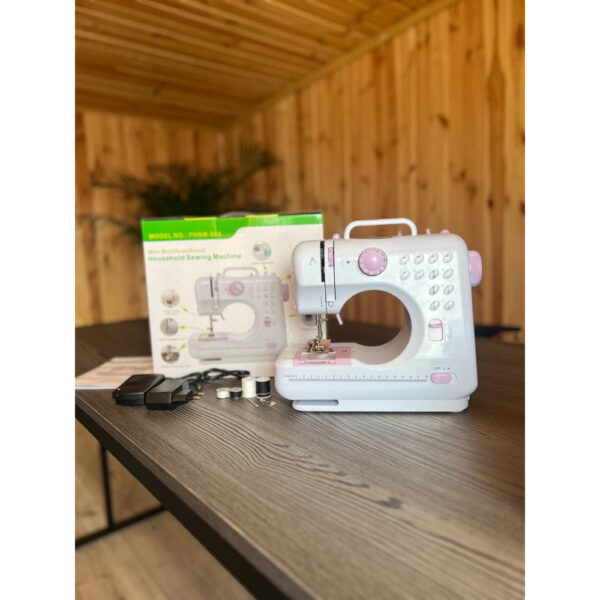 Мінішвейна машинка Sewing Machine 505 обладнана парою шпулечок, двома котушками, ножним приводом, і запасною голкою. Для новачків простіше вмикати машинку за допомогою ручки, а досвідченіші швачки можуть впевнено користуватися педаллю. Якщо Ви шиєте в нічну пору, то Вам зручніше буде скористатися підсвіткою, оскільки в машинці є лампа розжарювання й робоча зона завжди буде добре освітлена