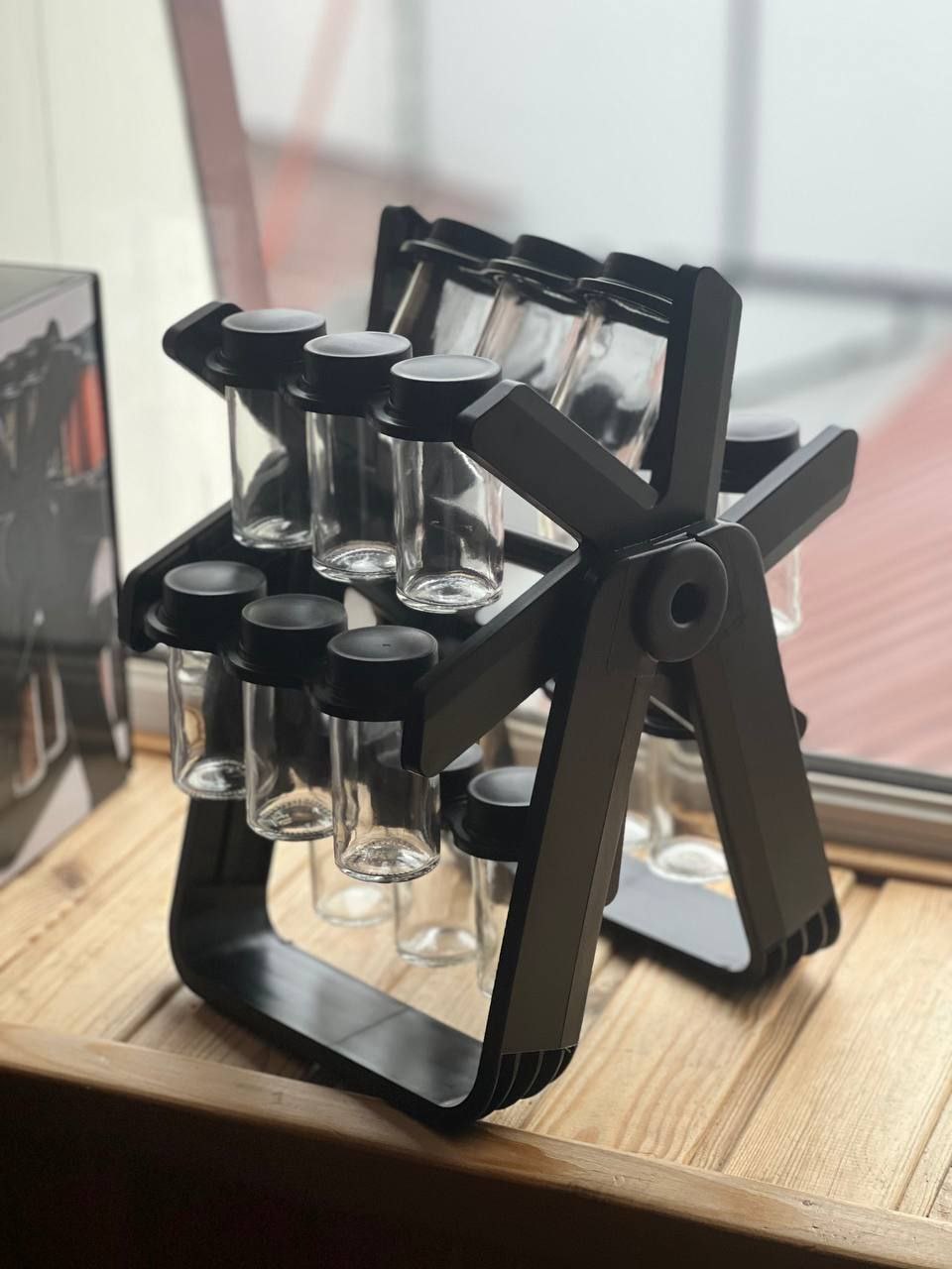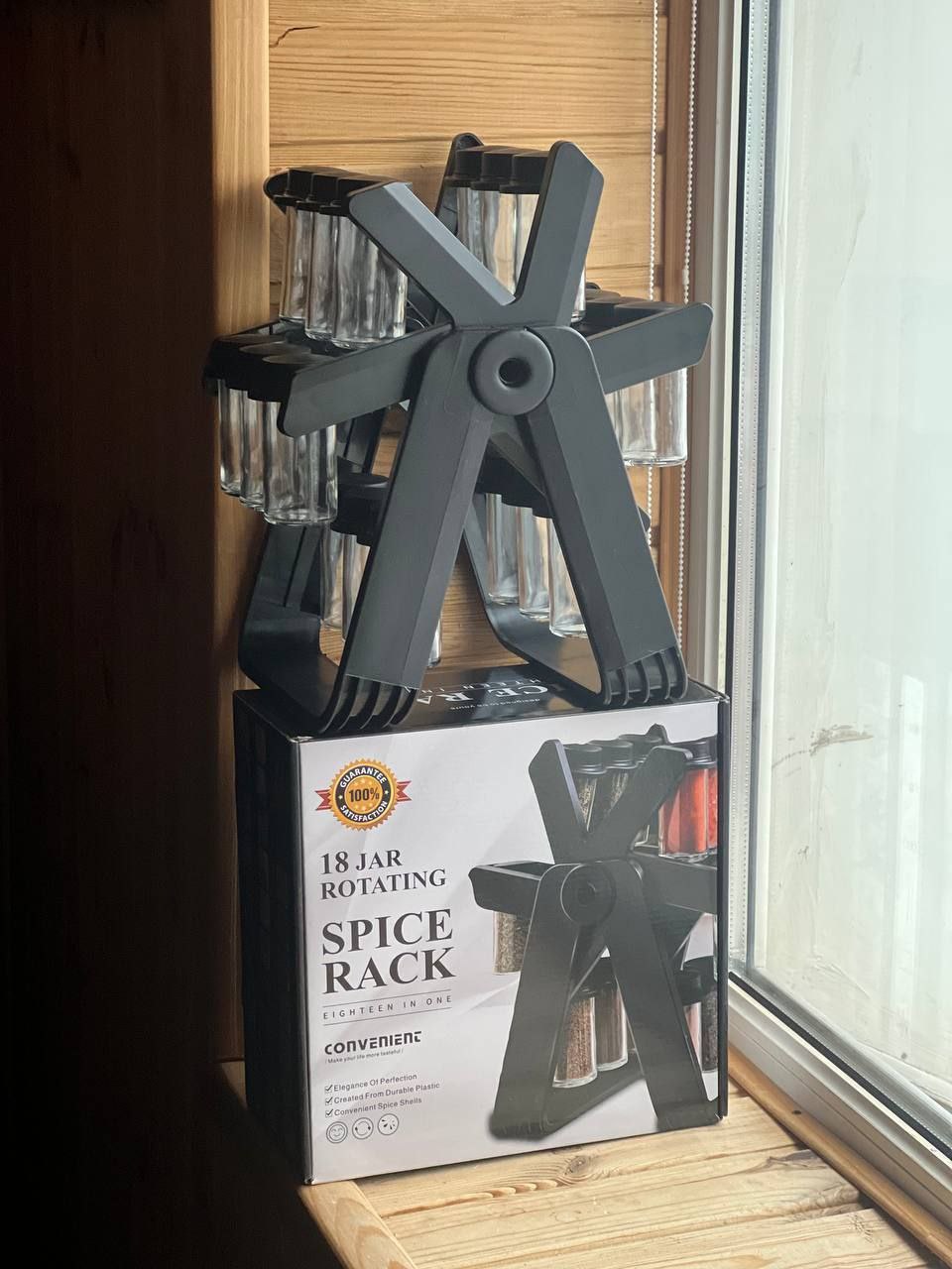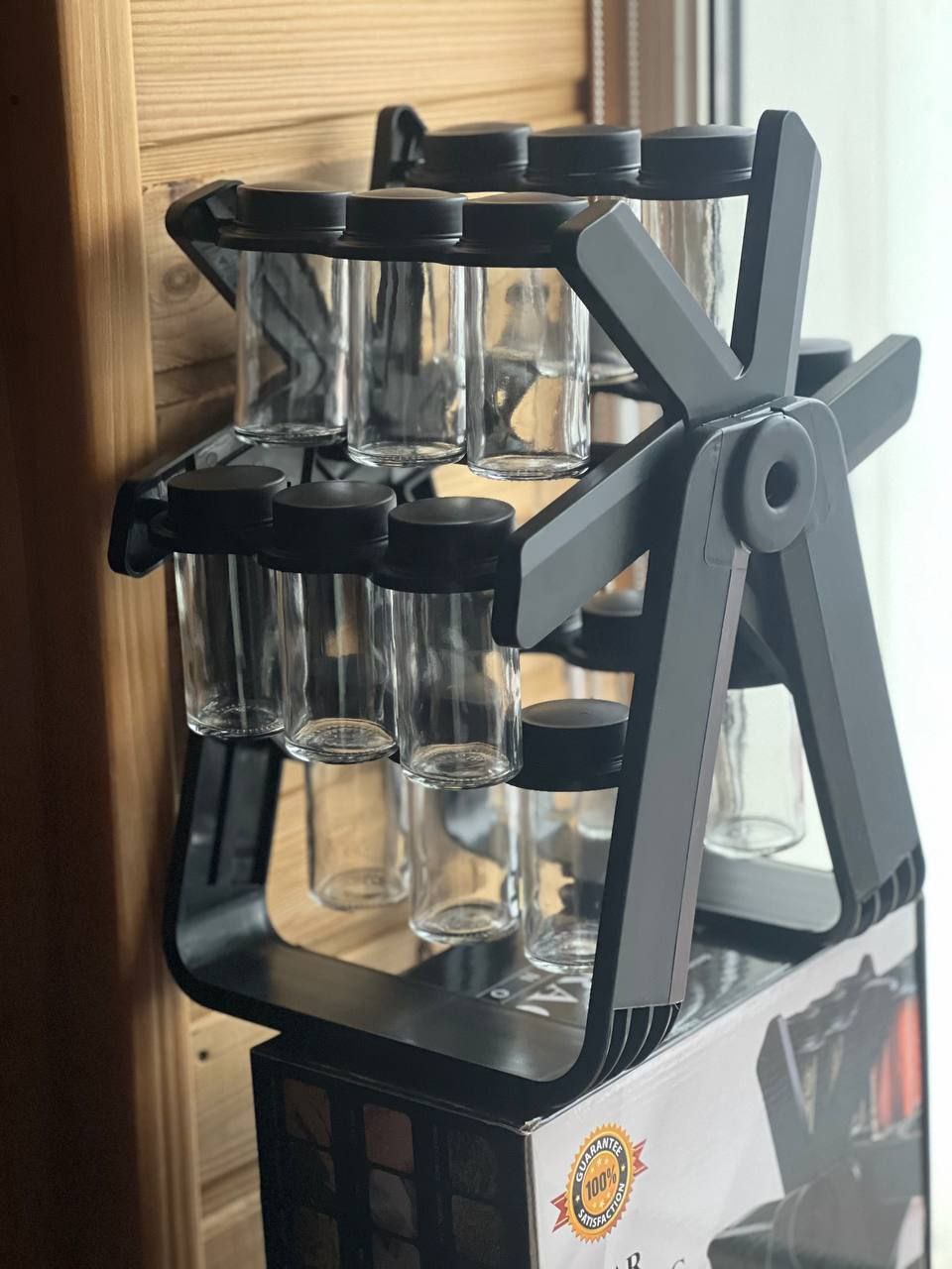 Цей органайзер для спецій оснащений обертовим колесом, що забезпечує зручний доступ до всіх ваших улюблених приправ і спецій. Завдяки своїй спецівниці, ви зможете швидко знайти потрібну спецію без зайвих зусиль. У комплект входить 18 ємностей, кожна з яких забезпечена кришкою для збереження свіжості і аромату. Набір для спецій допоможе вам підтримувати порядок на кухні та зменшити безлад. Обертове колесо дозволяє легко дістати потрібну ємність, навіть якщо на кухонному столі вже достатньо речей. Карусель для приправ має стильний і сучасний дизайн, який органічно впишеться в будь-який інтер’єр. Її зручний механізм обертання дозволяє легко використовувати приправи, що робить процес приготування їжі швидшим і приємнішим. Органайзер для спецій — це не просто практичний аксесуар, але і красивий елемент декору для вашої кухні. Цей набір спецівниць є ідеальним вибором для будь-якого кухаря, який цінує порядок і ефективність.