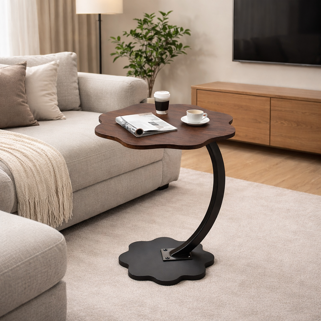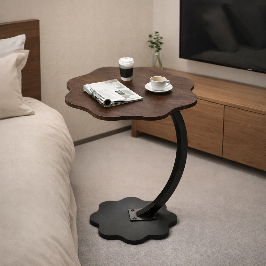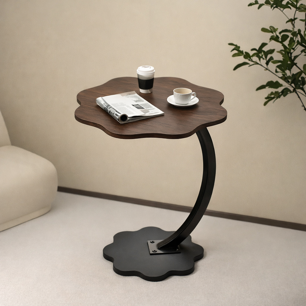 Стильний столик на одній ніжці — оригінальне та практичне рішення для сучасного інтер’єру. Елегантна вигнута опора надає конструкції легкості та візуальної динаміки, а фігурна стільниця в коричневому кольорі додає затишку та тепла в приміщення.