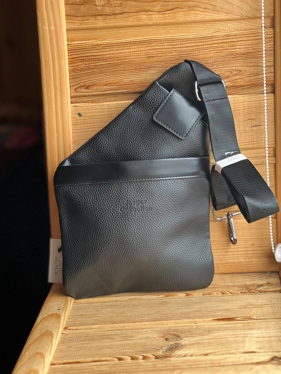 Чоловіча чорна сумка-слінг, виготовлена з шкіри, зручна чоловіча сумка для носіння на плечі.