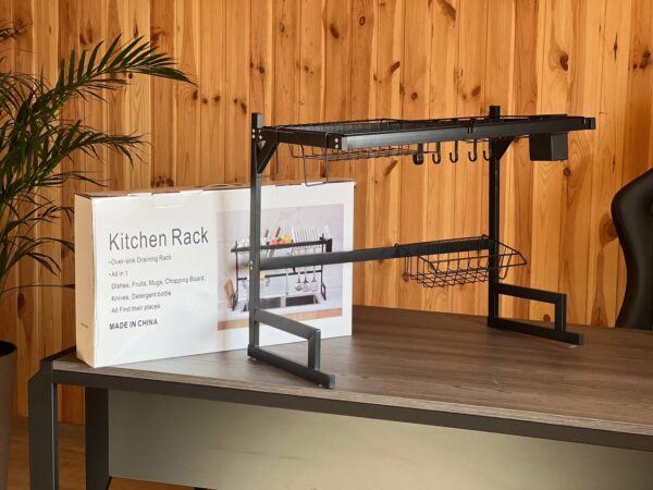 Підходить для зберігання чашок, мисок, посуду та іншого кухонного начиння. Використовуйте робочу поверхню з двоярусною кухонною полицею для посуду.