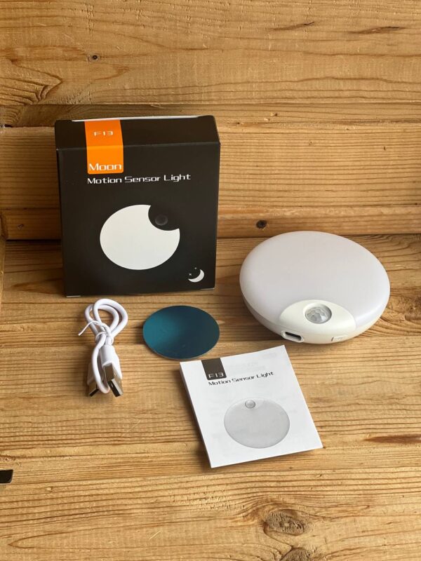 Світильник з датчиком бездротового руху, який чудово впишеться у Вашу оселю або квартиру. Світлодіодний настінний світильник холодного освітлення з регульованою яскравістю, щоб не зліпити та не шкодити Вашим очам, також оснащений великою LED лампою, яка створює гарне підсвічування. Він має круглу форму, а лампа виконана у формі місяця, що надає йому особливої краси.