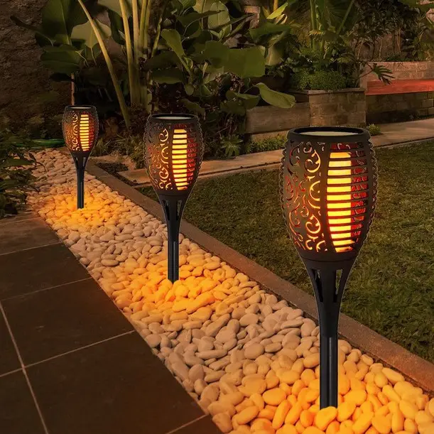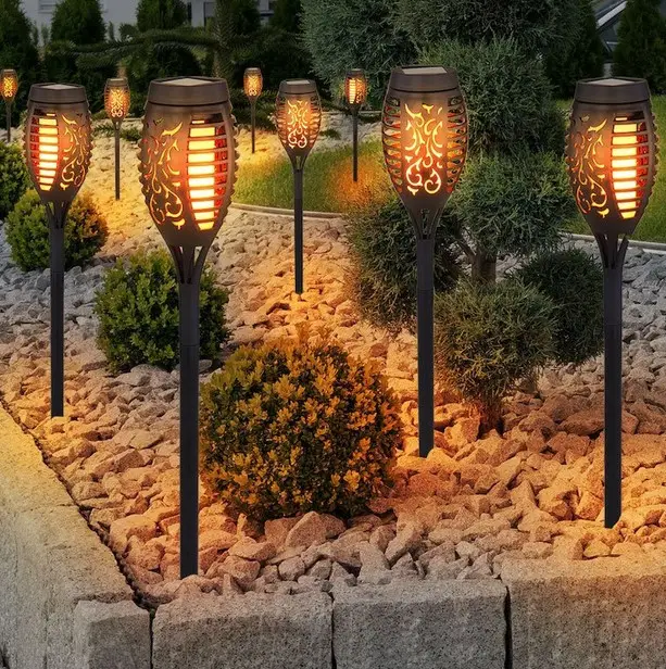 Садовий факел на сонячній батареї повністю водонепроникний з ефектом мерехтіння.