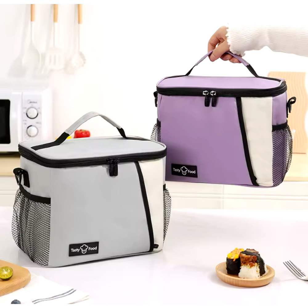 Кришка термобоксу закривається на блискавку. Глибока накладна передня кишеня. Переносити сумку можна за зручні ручки.