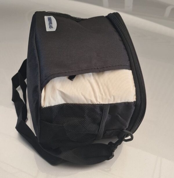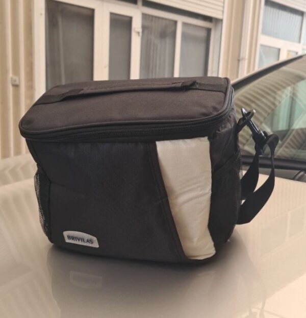 Термосумка виконана з полотна, а матеріал підкладки – алюмінієва фольга. Цей матеріал зберігає температуру, водонепроникний і міцний, а також він безпечний та екологічний, внутрішню обшивку легко чистити.