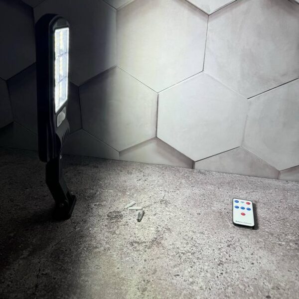 Призначений для автономного висвітлення території. Світильник працює від сонячних батарей і тому Вам не потрібно турбуватися про його заряджання або підключення до мережі. Датчик руху спрацьовує з відстані 7 – 9 метрів, при куті огляду 120 градусів. Час роботи при повному заряді акумулятора до 1-2 днів. Вбудовані 3 режими роботи (повний, 50% від потужності при неактивній роботі, 100% потужності у разі руху, 50% потужності).