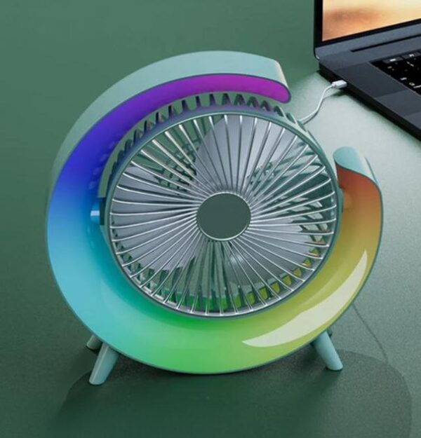Настільний вентилятор – це сучасний та стильний аксесуар, який забезпечить комфортну прохолоду в будь-якому місці. Вбудоване RGB підсвічування додає яскравості та стилю, створюючи приємну атмосферу у будь-якому приміщенні. Завдяки вбудованому акумулятору, міні вентилятор не потребує постійного підключення до мережі. Це забезпечує портативність та зручність використання. Заряджання пристрою здійснюється через USB, що дозволяє використовувати його з будь-яким USB-портом – комп’ютером, павербанком або адаптером для зарядки. Функція обертання на 180° дозволяє легко налаштувати напрямок потоку повітря, забезпечуючи оптимальну циркуляцію повітря у будь-якому місці. Вентилятор має декілька режимів швидкості, що дозволяє налаштувати інтенсивність обдування відповідно до ваших потреб та умов.