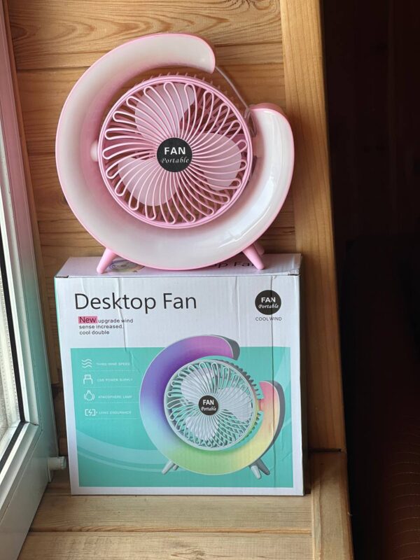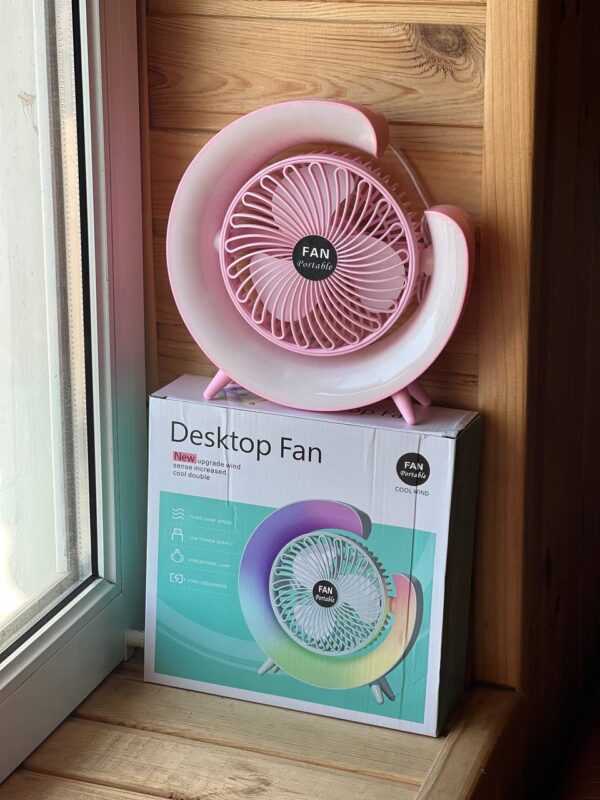 Міні вентилятор – це стильний та функціональний пристрій, який не тільки забезпечить вам прохолоду, але й додасть яскравості та затишку у будь-яке приміщення. Він ідеально підходить для дому, офісу або будь-якого іншого місця, де потрібне ефективне охолодження та атмосферне освітлення.Вбудоване світлодіодне підсвічування дозволяє вибрати з кількох колірних режимів, створюючи затишну та приємну атмосферу. Підсвічування може використовуватись як декоративне освітлення або нічник.
