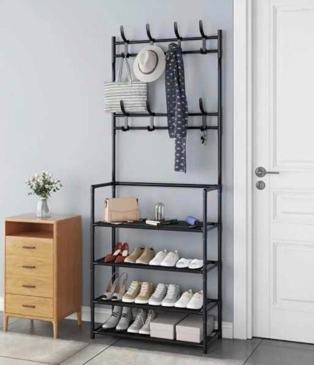 Вешалка для одежды в прихожую с полками для обуви NEWsimple floor clothes 80×26.5×154 БОЛЬШАЯ