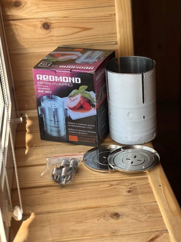 Шинчинниця Redmond RHP-M02 являє собою циліндричну прес-форму для приготування будинку, в умовах побуту, шинку, всіляких м’ясних та рибних рулетів, просто пресованого м’яса та різноманітних делікатесів, навіть ковбаси різного типу та виду. Справжня гідність цієї прес-форми Шинки – це саме простота її використання. І Вам абсолютно немає необхідності володіти видатними кулінарними і техлогічними навичками, і не потрібно ніякого додаткового обладнання та пристроїв. У всьому світі все більш актуальною стає тенденція здорового харчування та повернення до традиційної кухні. Шинківниця Redmond RHP-M02 дозволить Вам самостійно готувати домашні рулети, ковбаси, буженину та інші м’ясні делікатеси. Шинки Redmond RHP-M02 – унікальний прилад, завдяки якому ви легко зможете приготувати домашні делікатеси з м’яса, риби, птиці та морепродуктів з різними доповненнями та спеціями. Відтепер на вашому столі з’являться справжні гастрономічні вишукування з натуральних продуктів, які ви вибрали самі! Redmond RHP-M02 неодмінно стане невід’ємним атрибутом вашої кухні!