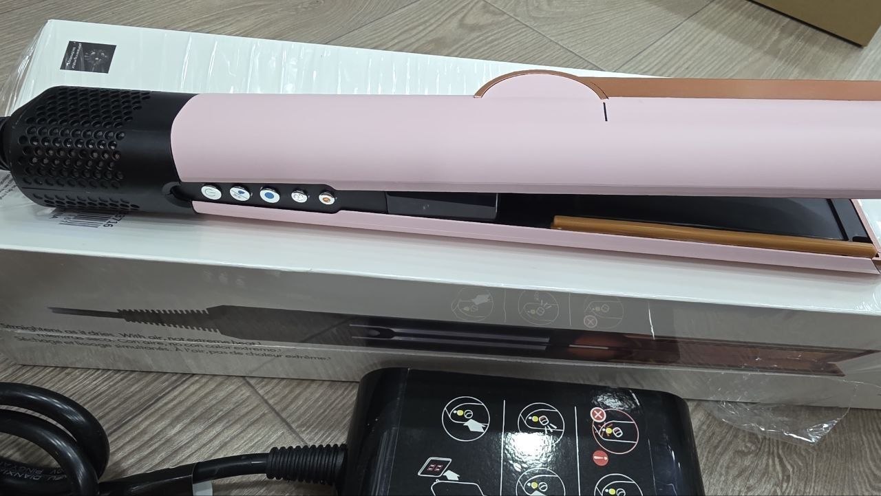 Стайлер 2-в-1 поєднує в собі функції фена та випрямляча, забезпечуючи швидку й дбайливу укладку без перегріву. Інноваційна система повітряного потоку під кутом 45° створює оптимальне натягнення прядок, гарантуючи інтенсивний блиск і ідеальну гладкість.